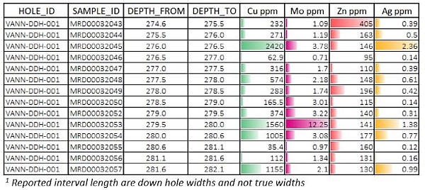Vania North Prospect Drill Result Highlights