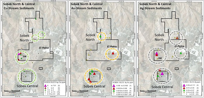 Figure 3: Sobek Central and Sobek North – Stream Sediment Sample Anomalies