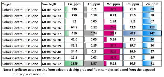 Table 2: Sobek Central - CLP Zone Select Rock Chip Grab Sample Results