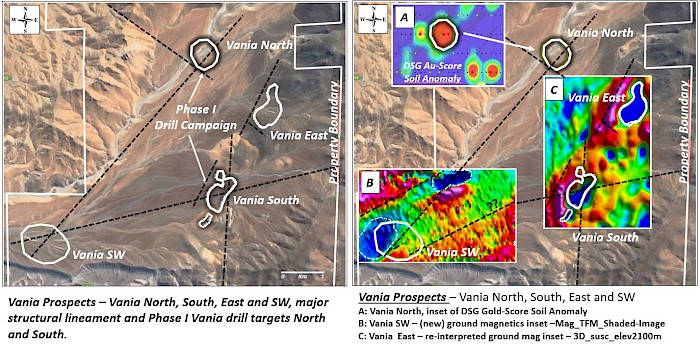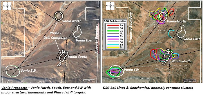 Figure 3: Vania Prospects Overview – Coincident Geochemical Anomalies Strengthen Drill Targets