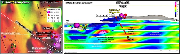 At the southeastern corner of the Sobek North block, a shallow cylindrically shaped magnetic high target (“Potro SE”) was identified 250 meters below surface from the original airborne-mag survey (news release dated May 13, 2024). The Potro SE magnetic high is cradled within the intersection of two productive faults the Maranceles Fault and the Ventana Fault, which continues 3 kilometers north-northeast to Lunahuasi.