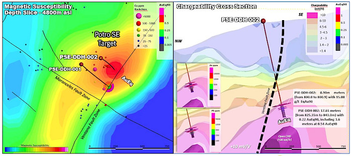 Highlights from the Second Drill Hole (PSE-DDH-002) Testing the Sobek North Potro SE Target: