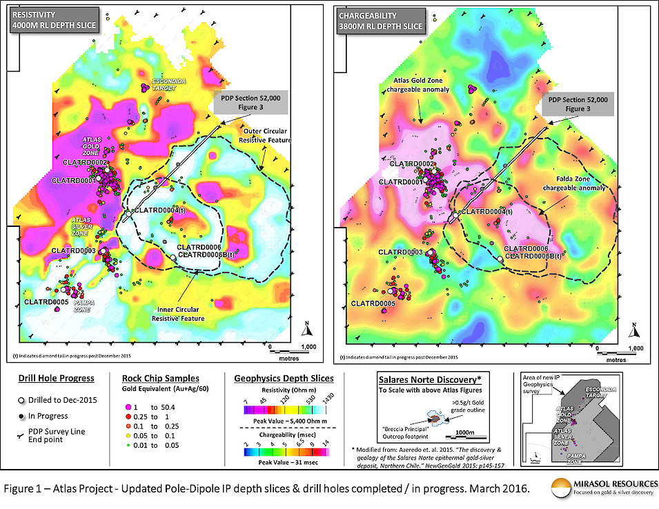 Mirasol reports drilling & new geophysical survey results from the Atlas Gold – Silver Project, Gorbea Joint Venture, Northern Chile.