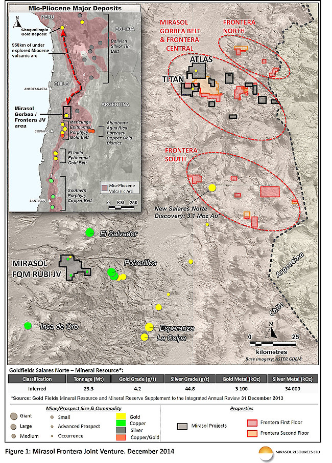 Mirasol Resources is pleased to announce that it has initiated its field reconnaissance program for the Frontera JV that encompasses an underexplored section of the highly prospective Mio-Pliocene age volcanic arc of northern Chile.