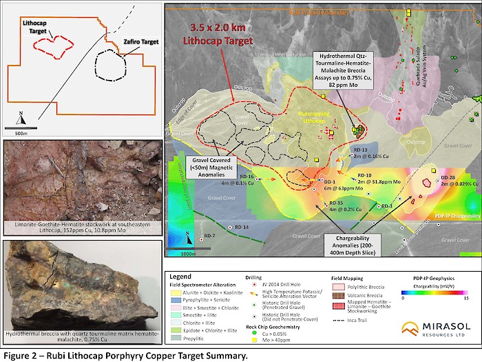 Mirasol’s Chair and Interim CEO, Patrick Evans, stated: “We are pleased to partner with MDF to drill test the Lithocap and Zafiro targets at Rubi, which have the potential to host large-scale porphyry deposits. Drilling will commence as soon as permits are in hand.”