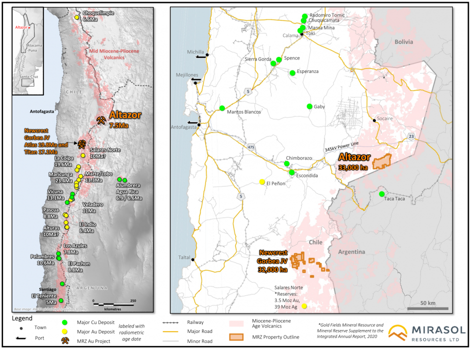 Mirasol’s President, Tim Heenan, commented: “Newcrest has made the decision to focus its exploration effort elsewhere in Chile, including at Gorbea. Newcrest has spent more than US$3M on the Altazor project and highly prospective drill ready targets have been identified, which now remain untested. Mirasol has commenced a detailed review of the Altazor exploration data and targets generated in order to assess its options to advance the project. We are continuing to engage with local stakeholders to be in position to drill the project during the upcoming field season either with a partner or as a self-funded project. Altazor has some of the most attractive drill targets in our portfolio.”