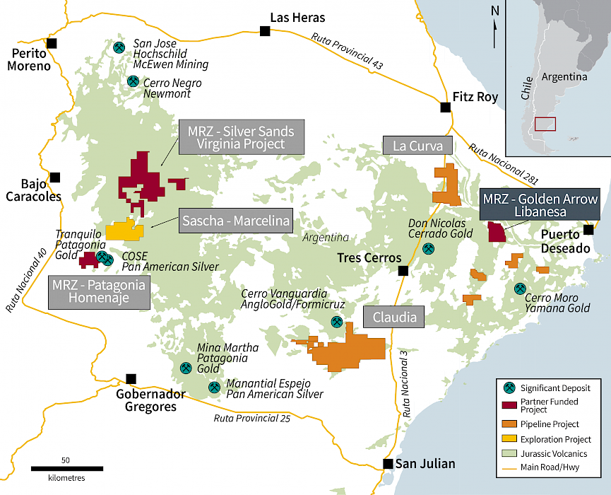 VANCOUVER, BC, October 12, 2021 — Mirasol Resources Ltd. (TSX-V: MRZ) (OTCPK: MRZLF) (the “Company” or “Mirasol”) is pleased to provide an update on two partner-funded projects in the province of Santa Cruz, Argentina. At the Libanesa project (“Libanesa”), Mirasol has executed a definitive agreement granting Golden Arrow Resources Corporation (TSX-V: GRG) (“Golden Arrow”) an option to acquire a 75% interest in the project. A surface exploration program operated by Golden Arrow is to start shortly to refine drill targets, with a maiden drill program planned for Q1 2022. At the Virginia project (“Virginia”), which is under an option agreement with Silver Sands Resources Corp. (CSE: SAND) (“Silver Sands”) and operated by Mirasol, the Company’s exploration team has started a 2,685m Phase III drill program.