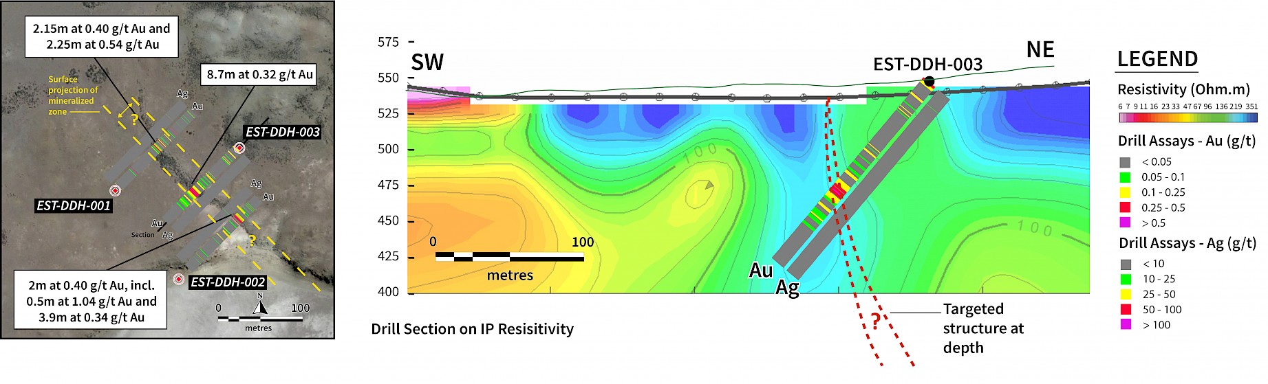Figure 4: Estancia plan view and section on EST-DDH-003