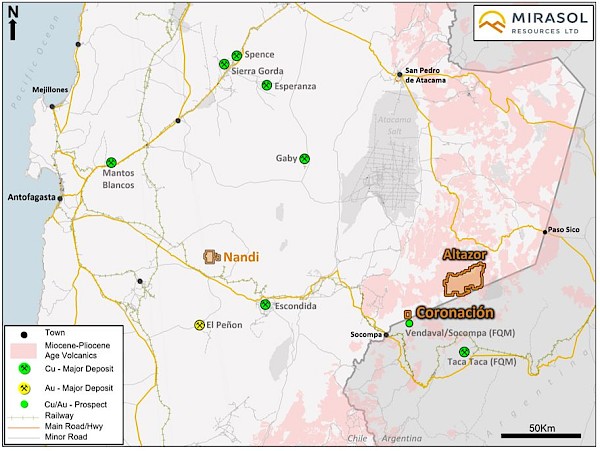 Coronación is a gold-copper property that occupies 1,200 hectares of the Mio-Pliocene age mineral belt and is 240 km east-south-east from Antofagasta in Chile.