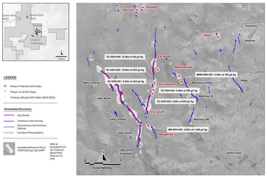The Phase IV program will comprise 14 holes for 1,500m, adding to the 8,867m already completed under the partnership with Silver Sands. The results to date have demonstrated the potential to identify significant mineralization outside of the previously delineated deposits (see amended NI 43 -101 technical report titled “Amended Technical Report, Virginia Project, Santa Cruz Province, Argentina - Initial Silver Mineral Resource Estimate” prepared by D. Earnest and M. Lechner and filed on SEDAR on February 29, 2016).