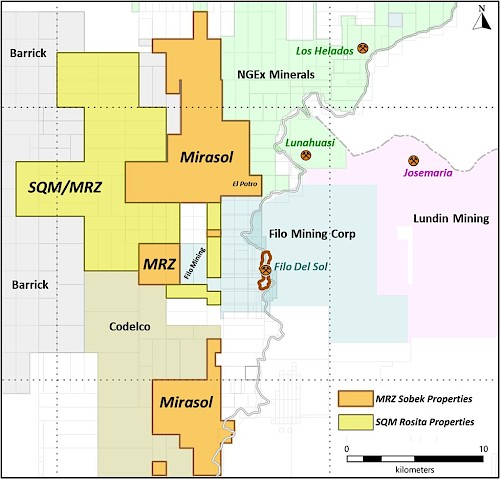 “The strategic expansion of the Sobek Project to include the sought after SQM Rosita property firmly secures Mirasol as a key player amongst industry-leading companies in the globally recognized Vicuña Copper-Gold district,” Mirasol’s President and CEO Tim Heenan stated. “The increase to our property size significantly increases the exploration potential and expands Sobek further to the east, just 3 kilometers west of the Filo del Sol Project.