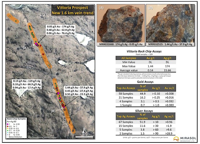 - The delineation of a new Au+Ag vein corridor at the Vittoria Vein Trend.